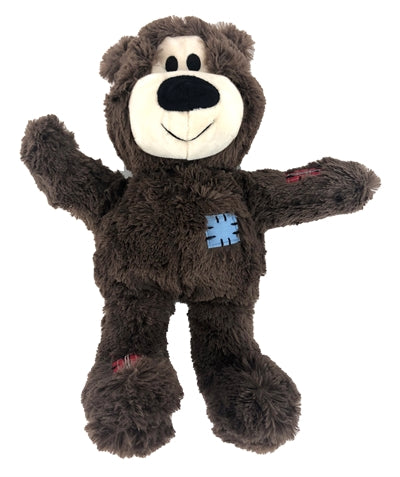 Stoeien, kauwen en spelen hoeft niet alleen met met de bekende flostouwen! Deze leuke berenknuffel van Kong heeft een skelet van touw. Door de minimale vulling, die zorgt voor minder troep, kan jouw hond door dit touwskelet lekker stoeien en bijten op deze knuffel. De knuffel heeft een pieper om speelgedrag nog meer te stimuleren. Door de pluche buitenkant is hij echter ook heel geschikt om mee te knuffelen. Deze beer komt in diverse natuurlijke kleuren en wordt assorti geleverd.