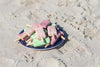 Samenstelling: Bataatzetmeel, kippenborst (22%), erwtenzetmeel, calciumcarbonaat, glycerine, aardappelzetmeel, cellulose, tarwebloem, appel, fructo-oligosaccharide