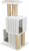 Trixie Be Nordic Krabpaal Skadi Wit 62 x 52 x 114 cm De Trixie Be Nordic Krabpaal Skadi Wit 62 x 52 x 114 cm is een krabpaal voor de kat van triplex in beach-style, met kussens, relax-mand en drie verdiepingen. Deze krabpaal is de perfecte aanwinst voor het moderne of rustieke interieur. Net als alle Be Nordic-producten is de Skadi-krabpaal uitgevoerd in beach-stijl, met wit gelakt triplex, kussens van canvas en palen omwonden met sisal. De krabpaal bestaat uit drie verdiepingen met bovenop een relax-mand met wendbaar kussen. Ook in het huisje op de tweede verdieping vind je een wendbaar kussen, waar jouw kat heerlijk knus en beschermd in kan slapen. Nagels kunnen naar hartenlust geslepen worden aan de dikke stammen met sisal en het stevige touw is goed voor veel speelplezier.