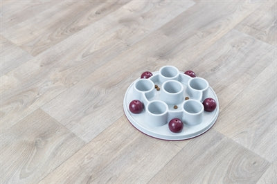- Speelbord voor de kat - Met kuiltjes en afdekkogels waaruit de kat zijn beloning moet vissen - Daagt mentaal uit en gaat verveling tegen - Slipvast door rubberen onderkant - Met handleiding voor training