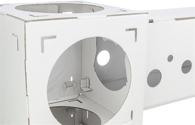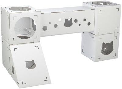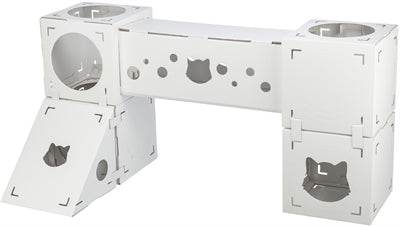 Trixie Kattenmeubel Finca Felice Karton Wit 125X62X62 cm Het Trixie Kattenmeubel Finca Felice Karton Wit 125X62X62 cm is een kattenmeubel van karton, bestaande uit vier kubussen, een tunnel en een loopplank. Katten houden van dozen! Dit kattenmeubel van karton bestaat uit vier kubussen, een tunnel en een loopplank, waarvan je zelf de opbouw kan bepalen. Enorm veelzijdig dus. Het geheel is gemaakt van 100% gerecycled materiaal.